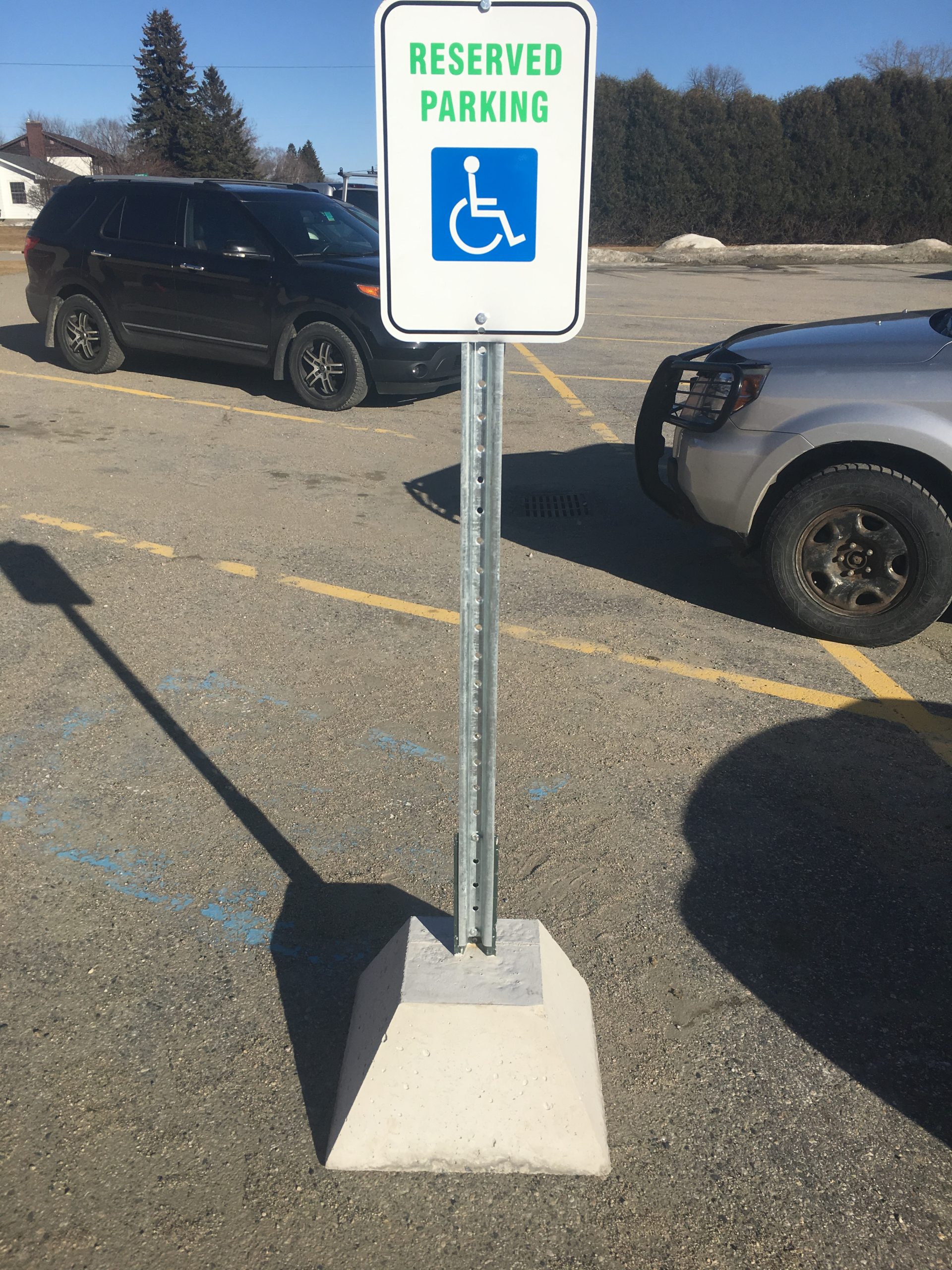 Our precast concrete sign bases come in one standard size sure to give your lot a clean, organized look. We can also provide the metal sign posts or you can choose to provide your own. Please contact us to get the dimensions of our sleeves so you can be sure to find the right-size posts.